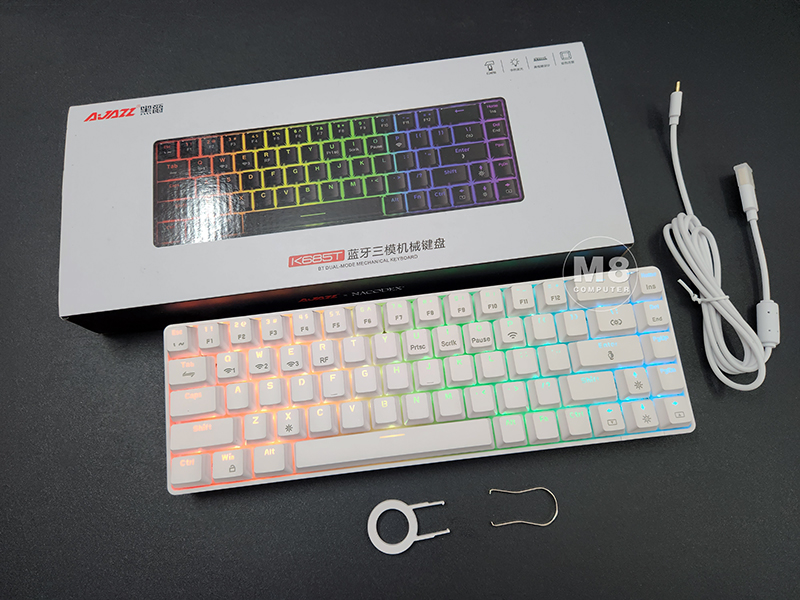Bàn phím cơ Ajazz K685T nhỏ gọn mang đi lại cho những người bận rộn nhưng lúc nào cũng cần có bàn phím rời theo người. Kết nối bluetooth nhanh chóng cho dân văn phòng làm việc, chơi game ổn định hơn với kết nối qua dây cáp Type-C
