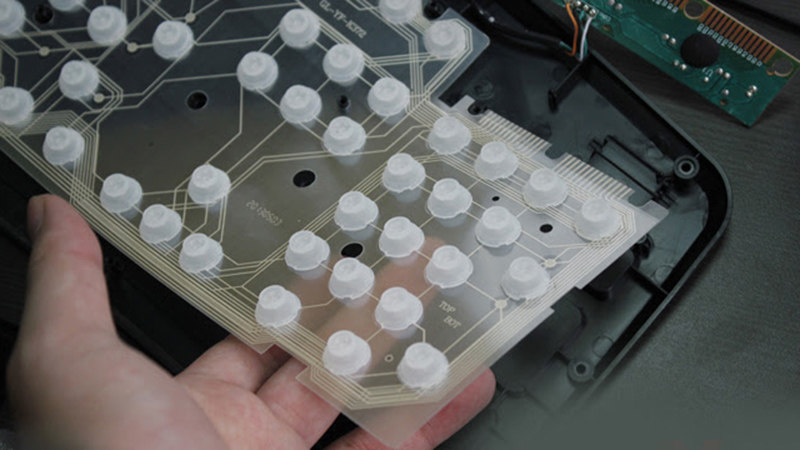 Khi bạn nhấn phím ở phím thường, bộ phận tiếp xúc là nút cao su sẽ chạm bản mạch là tấm nhựa mỏng bên dưới và ngay lập tức phím bấm sẽ được cơ chế đàn hồi phía dưới đẩy lại vị trí cũ để chờ đợi lượt bấm tiếp theo.