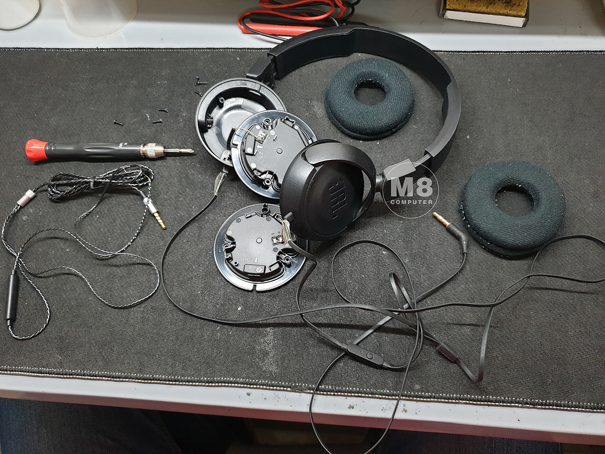 - Lỗi tai nghe bị hỏng 1 bên tai: Lỗi này cũng cần phải tháo tai nghe ra xác định xem tai nghe bị mắc phải lỗi gì đứt mạch ngầm hay là chết củ tai nghe, trường hợp đứt mạch ngầm thì anh em dùng mỏ hàn để hàn lại đoạn mạch đó còn nếu như tai nghe của anh em bị chết củ tai nghe thì anh em có thể mua củ tai nghe về để thay thế nhưng củ tai nghe khá là khó mua.