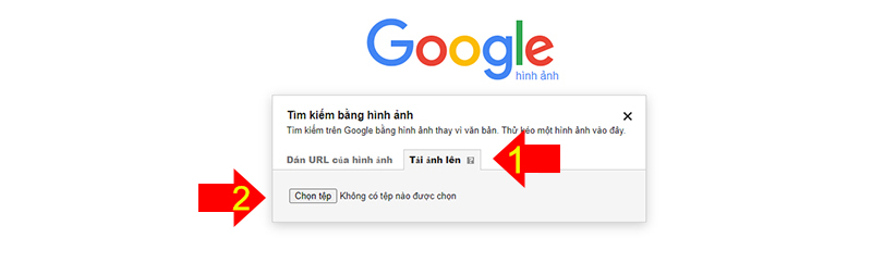 Bạn click vào tìm kiếm bằng hình ảnh > chọn tải lên > chọn tệp