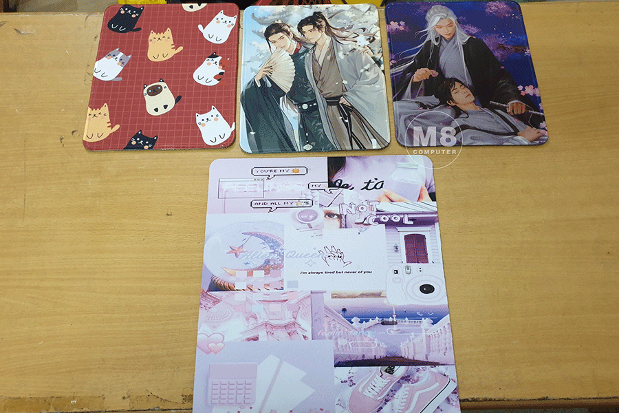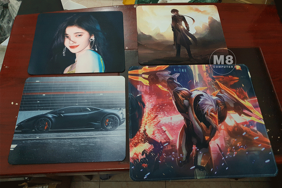 - M8 Computer Chuyên Dịch Vụ In Lót Chuột Theo Yêu Cầu "lấy ngay" trong ngày tại Hà Nội - Shop nhận in mọi hình ảnh anh em muốn từ số lượng 1 tấm đến hàng nghìn tấm kích thước 25x30cm theo yêu cầu. Ngoài kích thước này bên shop còn in các kích thước khác như: 21x26cm, 40x45cm hoặc 30x80cm. Cam kết với anh em lót chuột in theo yêu cầu ra không bị mờ, phai màu sau thời gian sử dụng.