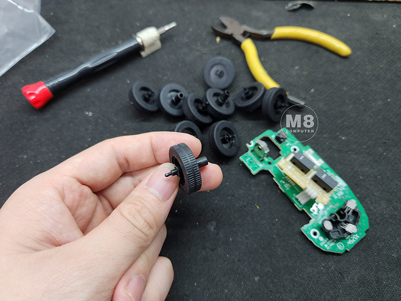 Sản phẩm con lăn cuộn để thay thế cho bánh xe lăn cuộn chuột trong trường hợp bánh xe lăn cuộn bị gãy trục hoặc sử dụng lâu ngày bị mòn cao su, nhão cao su bánh xe